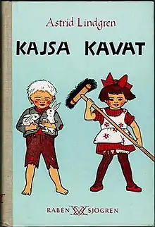 The story was first published in 1949 in the Swedish magazine Vi, illustrated by Ingrid Vang Nyman. In 1950 it was included in a novel collection called Kajsa Kavat. Later it was published as a picture book on its own, illustrated by Ilon Wikland. It was translated into many languages, among them English[1][2][3] and German.[4] While the Swedish name of the girl is Kajsa Kavat, she has a different name in other countries: Brenda Brave (English), Greta Grintosa (Italian)[5] and Polly Patent (German).