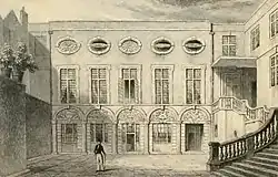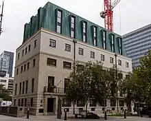 The Company's first hall was destroyed in the Great Fire of London in 1666,[3] and its second was bombed during the Blitz in 1940. Rebuilt in 1960, the present Brewers' Hall is located at Aldermanbury Square in the City of London, being the Company's HQ as well as available on a private hire basis for events.[4]