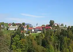 The small church in the centre of the settlement is a late 15th- to early 16th-century building. It is dedicated to Saint Cantius and belongs to the Parish of Žiri.[7]