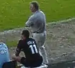 After 6 years serving in the backroom staff at the club following his retirement, he was appointed Bradford head coach in November 2000.[8] After initial confusion regarding chairman Chris Caisley's appointment - the tabloids reported that the new coach was Radio 4 comedian Ross Noble! - he was a hugely popular choice to succeed departing coach Matthew Elliott. Noble took Bradford Bulls to the 2001 Super League Grand Final in which they defeated Wigan. As Super League VI champions, Bradford played against 2001 NRL Premiers, the Newcastle Knights in the 2002 World Club Challenge. Noble oversaw Bradford's victory. In July 2002, Noble received an honorary doctorate from the University of Bradford for his achievements as a rugby league footballer, and coach. He took Bradford to the 2002 Super League Grand Final which was lost to St. Helens. He was named Super League coach of the year in 2003 and succeeded David Waite as Great Britain coach following the 2003 Ashes series. Noble took Bradford to the Grand Final again in 2004 but lost out to local rivals Leeds Rhinos 16–8 at Old Trafford. Noble led Bradford to victory in the 2005 Super League Grand Final his third Championship in five years with the club. Noble left Bradford midway through the 2006 season to join Wigan, handing control to his assistant Steve McNamara.