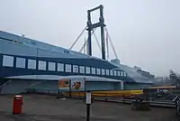 Würenlos and Nyköpingsbro are built as cable-stayed bridge. The bridge restaurant in Pratteln, designed by Casoni & Casoni from Basle, is unique for its fiberglass facade. In Scandinavia and Illinois the parking lots are at the same level as the bridge. Except for Frascati, Ayer Keroh, and Petroport, the other bridge restaurants have an entrance on street-level from which the customers enter the bridge by stairs, escalator or elevator.