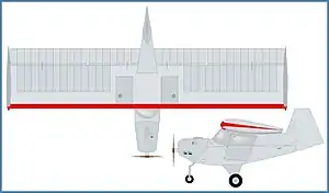 The GB-6 was a two-seat high wing monoplane with tricycle undercarriage, built mainly of wood with fabric and plywood skinning. The enclosed cockpit sat under the straight, rectangular wing which was given a slight dihedral. Each wing tip ended in a shallow end-plate fairing. The tail had a conventional fin with rudder, but no horizontal stabilizer. The wing was built using an original aerofoil section similar to the NACA 23012, the trailing edge of which is reflexed upwards with reverse camber to prevent movement of the centre of pressure with angle of attack and in this way to obtain longitudinal stability. Control was achieved using the rudder and full-span elevons.[2]
