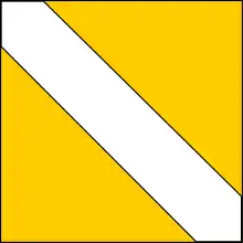 During World War I the need to identify friendly troops in assaulting formations was made difficult by the new dispersion of troops across the battlefield. Beginning with the arrival of large number of Kitchener's Army troops in 1915, and widespread after the Battle of the Somme of 1916, each battalion of a division would have a particular sign of a distinctive coloured cloth patch, either sewn to the uniform jacket (on the sleeves, or the back of the tunic), or painted on the helmet.[1] These distinguishing marks, known as "Battle Patches" were distinct from the Division signs, and were for the most part simple shapes and colours. The scheme for these Battle patches could be decided at division or brigade level or be based on regimental colours or insignia, and was in some cases continued down to company or even platoon level. This system did not prevent duplication across the divisions, a red square was worn by at least 14 battalions.[2]