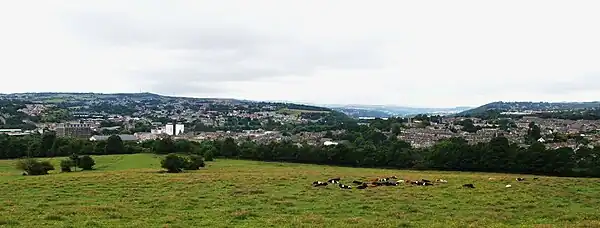 Brighouse is a town within the metropolitan borough of Calderdale, in West Yorkshire, England. Historically within the West Riding of Yorkshire, it is situated on the River Calder,[2] 4 miles (6.4 km) east of Halifax. It is served by Junction 25 of the M62 motorway and Brighouse railway station on the Caldervale Line and Huddersfield Line. In the town centre is a mooring basin on the Calder and Hebble Navigation. The United Kingdom Census 2001 gave the Brighouse / Rastrick subdivision of the West Yorkshire Urban Area a population of 32,360.[3] The Brighouse ward of Calderdale Council gave a population of 11,195 at the 2011 Census.[4] Brighouse has a HD6 postcode.