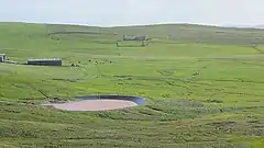 ![]() A reservoir which allows particles to precipitate out of water draining the Brindister Quarry | |