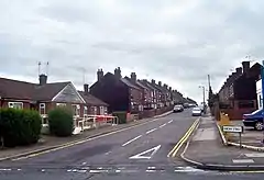 Brinsworth is located about 1 mile (1.6 km) south of the site of a Roman fort at Templeborough. Remains thought to be part of the Roman road called Icknield Street, which passed the fort, were discovered on White Hill in 1948, between Brinsworth and Canklow.[4] Other Roman remains found on White Hill by a team led by Dorothy Greene, Keeper of Roman Antiquities at Rotherham's Clifton Park Museum, included nine roads in a grid 926 ft by 490 ft at grid reference SK420905.[5] In addition, walls of buildings were traced including what may have been a temple platform,[4] and pottery dating from the late 2nd and 3rd centuries was found.[5]