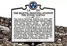 Historic marker for Bristol Municipal Stadium at Tennessee High School