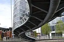 Temple Quay is an area of mixed-use development on a site to the northwest of the station,[18] where the station's goods yard was formerly located.[19] The development project was initiated in 1989 by Bristol Development Corporation, who originally called it Quay Point. In 1995, the corporation transferred its rights on the site to English Partnerships, and development started in 1998.[18] The developer was Castlemore Securities.[20] By 2002, the development south of Bristol Floating Harbour was largely complete and a new phase was started on the other side of the harbour, called Temple Quay North.[21] Castlemore went into administration in 2009, but development continued in the hands of the administrator, PricewaterhouseCoopers.[20]