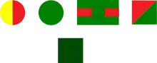 ![]() 69th Brigade WW1 patches | From left to right, top row: 11th West Yorkshire Regiment, 8th, 9th Yorkshire Regiment (Green Howards), 10th Duke of Wellington's. Bottom row: 69th Machine gun Company. Except the MG company which wore its patches on both sleeves, all were worn on the back. In Italy the 11th West Yorks and the 8th Green Howards used the patch as a pargi flash on pith helmets, and the 10th Duke of Wellingtons stencilled a silhouette of the regimental badge on their helmets.[75] |