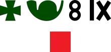 ![]() 70th Brigade WW1 patches | From left to right, top row: 11th Sherwood Foresters, 8th King's Own Yorkshire Light Infantry, 8th, 9th York and Lancaster Regiment. This brigades patches were based on regimental badges or battalion numbers. Bottom row: 70th Machine gun Company. Except for the MG company, which wore its patches on both sleeves, all patches were worn on the back, in addition the 8th York and Lancasters stencilled theirs on the helmet.[75] |