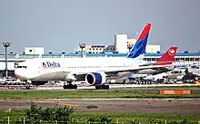 The aircraft involved in the accident was a Boeing 777-236ER, registration G-YMMM (manufacturer's serial number 30314, line number 342), powered by two Rolls-Royce Trent 895-17 engines.[10] The aircraft first flew on 18 May 2001 and was delivered to British Airways on 31 May 2001.[11] It had a seating capacity of 233 passengers.[4](p12) On board were 16 crew members and 136 passengers. The crew consisted of Captain Peter Burkill (43), Senior First Officer John Coward (41), First Officer Conor Magenis (35), and 13 cabin crew members. The captain had 12,700 total flight hours, with 8,450 in Boeing 777 aircraft. The senior first officer had 9,000 total flight hours, with 7,000 in Boeing 777 aircraft. The first officer had 5,000 total flight hours, with 1,120 in Boeing 777 aircraft.[4](pp7-8)