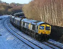 The Class 66 is a type of six-axle diesel-electric freight locomotive developed in part from the Class 59, for use on the railways of the UK. Since its introduction the class has been successful and has been sold to British and other European railway companies. In Continental Europe it is marketed as the EMD Class 66 (JT42CWR).