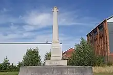 When unveiled, the memorial sat at the former entrance to the British Thomson-Houston factory on Mill Road. The site was redeveloped in 2010 and the memorial was relocated to a site around 400 metres (1,300 feet) away on Technology Drive, formerly occupied by the firm's electrical engineering works.[1]