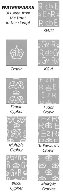 Images of UK stamps are protected by Royal Mail copyright, therefore images of current stamps are not in this article.[3]