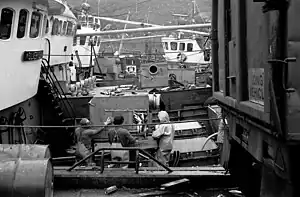 In the past local conditions led to the development of a wide range of types of fishing boats. The bawley and the smack were used in the Thames Estuary and off East Anglia, while trawlers and drifters were used on the east coast. In 1870 paddle tugs were being used to tow luggers and smacks to sea. Steam trawlers were introduced in 1881, mainly at Grimsby and Hull. The steam drifter was not used in the herring fishery until 1897. In 1890 it was estimated that there were 20,000 men on the North Sea. The first trawlers fished over the side but in 1961 the first stern trawler was used at Lowestoft for fishing in Arctic waters. By 1981 only 27 of 130 deep sea trawlers were still going to sea. Many were converted to oil rig safety vessels. However the "inshore" boats landed a greater weight of fish even in 1973.