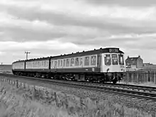The railways were placed under Government control two days before war was declared on 3 September 1939.[16] After the war, the railways were in a poor financial state, with a maintenance backlog.[17] Government control was relinquished when the Transport Act 1947 nationalised most of the railways in the United Kingdom and control passed to the Railway Executive of the British Transport Commission,[18] who inherited 37 diesel railcars.[19] A 1952 report recommended lightweight diesel multiple unit trials, and a memo to the Board suggested diesel railcars could replace push-pull steam trains on 168 routes. After fuel rationing ended, the first order was placed in November 1952 for 21 x 2-car sets built at Derby Works, which became known as Derby lightweights.[20] More were to follow until this class numbered 66 motor cars and 55 trailers.[21] In 1952, British United Traction made numerous 4-wheeled single car railbuses.[22]