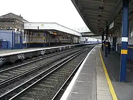 Brixton railway station is a commuter railway station in Brixton, South London, UK. It is on the Chatham Main Line, 3 miles 14 chains (5.1 km) down the line from London Victoria. Trains are operated by Southeastern. The typical service is one train every 15 minutes in both directions, from Victoria to Orpington via Bromley South.