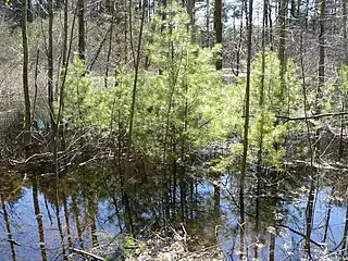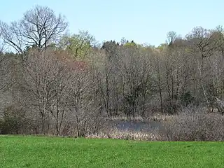Broadmoor's 9 miles of trail pass through woodlands, marshland, ponds, and a glacial drumlin, and along the banks of the Charles River.[1] The sanctuary's wetlands feature wood ducks, painted turtles, great blue herons, and river otters.[8]