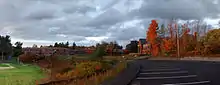The new Bromfield School, as seen from the rear parking lot, is next to the Old Bromfield School (now the Harvard Public Library) seen on the right.