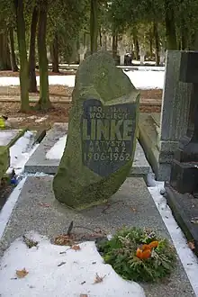 On his return to Warsaw he painted his most celebrated Screaming Stones series (1946–56). It was a terrifying vision of the capital in ruins. The work was eponymously published in 1959 with an introduction by Maria Dąbrowska. After the war he exhibited rarely as his work did not cohere with the then prevailing political climate. He was widowed and remarried before the war. There were no children. Linke died of cancer and is buried in Powązki Military Cemetery in Warsaw.
