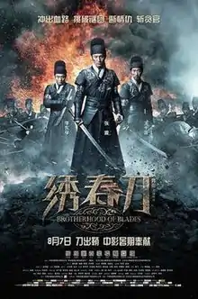 Brotherhood of Blades (Chinese: 绣春刀; pinyin: Xiùchūndāo) is a 2014 Chinese wuxia film directed by Lu Yang.[3] Its sequel, Brotherhood of Blades II: The Infernal Battlefield was released on August 11, 2017. Set in the Ming dynasty (1368-1644), the story follows Shen Lian, a guard of the imperial secret police seeking and his three comrades as they are ordered to hunt down the former eunuch Wei Zhongxian and his faction within the imperial court. Starring Chang Chen, Cecilia Liu and Wang Qianyuan, the film was released in China on August 7, 2014.[3]
