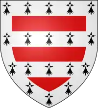 - ↑ Arms of John Chandos are generally given as Argent, a pile gules, not as shown in the Bruges Garter Book as Or, a pile gules