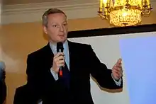 From 2007 to 2008, he was a member of the National Assembly of France, representing Eure's 1st constituency.[4][5] After becoming a political advisor to the UMP, Le Maire was appointed to be Secretary of State in charge of European Affairs, replacing Jean-Pierre Jouyet, in December 2008, serving until 2009.[1][2][13]