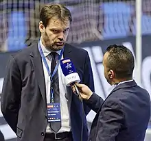 Bruno Martini (left) during an interview with a beIN Sports presenter in 2015