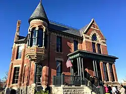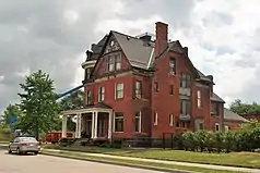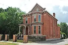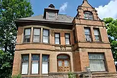 1885 | 104 Edmund Pl. | French Renaissance Revival, Gothic Revival | Originally owned by lumber baron Lucien S. Moore, 104 Edmund Place, built around 1885[18] in a French Renaissance Gothic Revival style and restored in 2006, has 7,000 sq ft (650 m2).[9][67] The Lucien Moore House restoration was featured December 27, 2005, by HGTV's restore America Initiative in partnership with the National Trust for Historic Preservation.[68][69] It may also be known as the Moorie Town House or The Edmund. | |