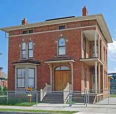 1870 | 216 Winder St. | Italianate | This house is a relatively rare example of residential Italianate architecture in Detroit.[48] It was originally built for eye doctor John F. Terry, but in 1871 was sold to Lyman Cochrane.[49] Cochrane was a state senator and Superior Court Judge,[50] serving in this capacity until his death in 1879.[51][52] | |