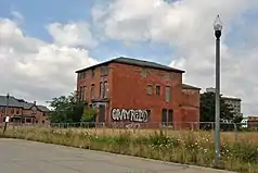 Starting in the 1960s, many of the buildings became unoccupied and fell into disrepair; however, the neighborhood maintained much of its historical integrity, and some attempts were made to preserve it. The first serious redevelopment plan in Brush Park's history was the Woodward East Renaissance project, planned to be completed in 1976, America's bicentennial year.[32] The ambitious plan included restoring the surviving historic mansions and erecting modern residential buildings on the empty lots, but it was left unrealized due to disorganization.[33] The area bounded by Alfred, Brush, Watson, and John R. Streets, named Woodward East Historic District, was designated a Michigan State Historic Site on September 17, 1974, and listed on the National Register of Historic Places on January 21, 1975;[2] the larger Brush Park Historic District, bounded by Woodward, Mack, Beaubien, and the Fisher Freeway, was established by the City of Detroit on January 23, 1980.[3] Despite these attempts to save what was left of the neighborhood's historic character, by the 1980s Brush Park had gradually fallen into a state of "nearly total abandonment and disintegration,"[5] gaining a poor reputation as one of Detroit's most derelict areas. Abandoned buildings became targets for vandals and arsonists: as a result, dozens of structures were demolished by the city for security reasons. During the 19th century, around 300 homes were built in Brush Park, including 70 Victorian mansions; at present, about 80 original structures remain in the area. Notable buildings that were demolished include the Woodward Avenue Baptist Church (1887), destroyed by fire in 1986,[34] and St. Patrick Catholic Church (1862), destroyed by fire in 1993.[35]