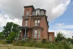 Originally part of a French ribbon farm, Brush Park was developed beginning in the 1850s as an upscale residential neighborhood for Detroit's elite citizens by entrepreneur Edmund Askin Brush. Dozens of Victorian mansions were built there during the final decades of the nineteenth century, and Brush Park was nicknamed "Little Paris" due to its elegant architecture.[8] The neighborhood's heyday didn't last long, however: by the early twentieth century most of is affluent residents started moving to more modern, quieter districts, and Brush Park was quickly populated by members of Detroit's fast-growing working class. Severely affected by depopulation, blight and crime during the 1970s and 1980s, the neighborhood is currently experiencing restorations of its historic buildings and luring new residents.[9][10]