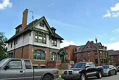 1912 | 293 Eliot St. | American Foursquare | Since May 15, 1939, this building has housed Gamma Lambda Chapter, a local chapter of Alpha Phi Alpha African-American Greek-lettered fraternity.[41][42] Detroit's Gamma Lambda Chapter, founded in 1919, "served as a focal point for black social, cultural, educational, and community service activities in an era when there were few other outlets."[43] The house, built around 1918, was designated a Michigan State Historic Site on August 30, 1977. | |