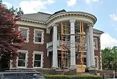 In the 1890s the character of the subdivision began to change, as many prominent members of the local German Jewish community moved to Brush Park. This period of the neighborhood's history is recorded by the neoclassical Temple Beth-El, designed by Albert Kahn for the Reform Congregation and constructed in 1902.[18][23][24] Around the same time, Brush Park saw the construction of its first apartment buildings. Some of the neighborhood's earliest examples of this type of structure were the Luben Apartments, built in 1901 by architect Edwin W. Gregory[18] and demolished in 2010,[25] and the Alfred Apartments, built in 1903 by architect Alamon C. Varney and demolished in 1930s. These apartments featured large and sumptuous units, and their design blended with those of the surrounding mansions; however, the construction of apartment buildings undoubtedly represented a decrease in the quality of Brush Park's building stock.[18]
