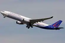 A Brussels Airlines Airbus A330-300 in an interim livery