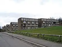 The 1950s and 1960s saw the construction of numerous brutalist apartment blocks in Sheffield, England. The Sheffield City Council had been clearing inner-city residential slums since the early 1900s.[1] Prior to the 1950s these slums were replaced with low-rise council housing, mostly constructed in new estates on the edge of the city.[1] By the mid-1950s the establishment of a green belt had led to a shortage of available land on the edges of the city, whilst the government increased subsidies for the construction of high-rise apartment towers on former slum land, so the council began to construct high-rise inner city estates, adopting modernist designs and industrialised construction techniques,[1] culminating in the construction of the award-winning Gleadless Valley and Park Hill estates.[2]