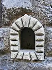 Buchettas are typically of similar dimensions, about 30 centimetres (12 in) tall and 15 centimetres (5.9 in) wide, and arched at the top, but are otherwise very diverse in style. They were usually built into the streetside walls of the palaces of aristocrats, usually near the main entrance, and may be quite ornate. They were closed outside of opening hours with a hatch, which might be painted various colours, or with a still life or religious painting. Many hatches are now missing, and some buchettas are disused and have been sealed off.[2]