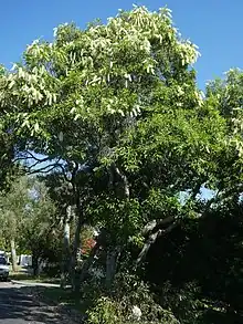 The ivory curl tree has become a popular planting in parks, streets and private gardens in regions far beyond the natural range of the tree. Its popularity is due to the ease of cultivation, the mass flowering and its variable foliage shape and colour. It grows well even as far south as Sydney and Melbourne, but only reaches about 7–8 m (23–26 ft) tall in these areas.[5][6][7][8]