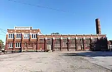 The one- and two-story building was designed by Budd Dairy Company president William Hooper Budd along with D. Riebel & Sons.[2] The original structure measured 71 ft × 153 ft (22 m × 47 m).[3] It has an exterior of red pressed brick and white enamel terra cotta trim. The inside utilizes concrete and steel, with white enamel brick finishes. The building originally had red tile floors throughout.[2] Electric lights illuminated the building at night, with a total of 148 lamps.[3]