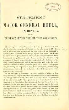 "Statement of Major General Buell, in review of the evidence before the military commission" (1863, retrieved from the Library of Congress)