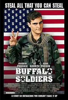 Buffalo Soldiers is a 2001 black comedy war film directed and co-written by Gregor Jordan, based on the 1993 novel of the same name by Robert O'Connor. The film stars Joaquin Phoenix, Ed Harris, Scott Glenn, Anna Paquin and Dean Stockwell. It follows a group of American soldiers stationed in West Germany during 1989 just before the fall of the Berlin Wall.