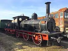 Bulgarian State Railways locomotives 142-150 provided motive power on Bulgaria's first railway, opened in 1866 to connect Ruse on the River Danube with Varna on the Black Sea. Ordered from England shortly after the opening of the railway, they were intended as mixed-traffic locomotives to supplement the line's original locomotive fleet. They were powerful 2-cylinder 0-6-0 locomotives with 6-wheeled tenders.[1]