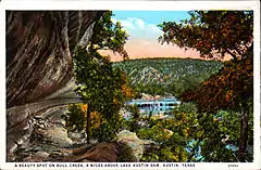 Bull Creek is a tributary of the Colorado River originating in the Texas Hill Country. The creek passes through some of the more scenic areas in the Austin region and forms a greenbelt that is the habitat for many indigenous species of flora and fauna. It runs beneath steep slopes and benches surfaced with shallow clay loams that support ashe juniper, escarpment live oak, mesquite, and grasses.[1]
