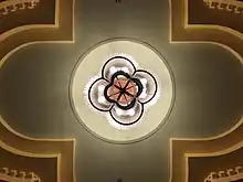 The building was designed by Los Angeles architects John and Donald Parkinson;[3] the interior design was by Eleanor Lemaire and Jock Peters of the Feil & Paradise Company;[3] the ceiling mural of the porte-cochère was painted by Herman Sachs.[3]