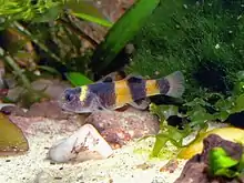The bumblebee fish (Brachygobius xanthozonus) is a species of fresh and brackish water goby native to Thailand and Indonesia. This species can reach a length of 3.8 centimetres (1.5 in) SL[2] and is found in lower parts of rivers, coastal areas, mangroves and highly vegetated areas.