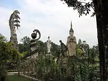 Bunleua Sulilat (June 7, 1932 August 10, 1996; often referred to as Luang Pu Bunleua Sulilat; Thai: หลวงปู่บุญเหลือ สุรีรัตน์, RTGS: Luangpu Bunluea Surirat, pronounced [lǔa̯ŋ.pùː būn.lɯ̌a̯ sù(ʔ).rīː.rát]; numerous variants of the spelling exist in Western languages: see below) was a Thai/Isan/Lao mystic, myth-maker, spiritual cult leader and sculpture artist. He is responsible for creating two religious-themed parks featuring giant fantastic sculptures made of concrete on the banks of the Mekong river near Thai-Lao border: Buddha Park (Lao: ວັດຊຽງຄວນ, Thai: วัดเซียงควน) on the Lao side (25 km southeast from Vientiane), and Sala Keoku (Thai: ศาลาแก้วกู่) on the Thai side (3 km east of Nong Khai).