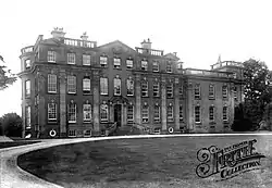 A garden was initially laid out with the house, covering an area of 16 hectares.[2][3] The River Tern passes to the north of Buntingsdale Hall, with the main garden retaining wall west of the house, and an apsidal bow overlooking the pond.[3] The grounds were altered several times during the 18th and 19th centuries and walled gardens, a kitchen garden (to the north), grassland (east), large fishpond and boathouse (west), and woodland (to the south) were added.[2][3] By the end of the 19th century, a new entrance from the north and a lodge had been added.