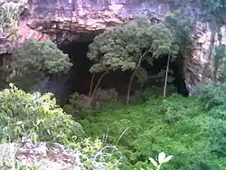 Discovered in 1912, it is believed that the hole has been formed by the collapse of the roof of a cave. The cave itself is 105 metres (344 ft) deep and 295 metres (968 ft) wide, having in its midst a dense rainforest with gigantic ferns typical of a primitive age.[1]