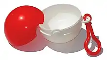 Burger King released a set of 57 Pokémon toys in a $22 million Pokémon: The First Movie promotion,[1] which were contained within round Poké Ball containers measuring from 2.75 and 3 inches in diameter.[2] Burger King distributed the Poké Balls inside big kids meals and regular kids meals,[3] and it was to last for eight weeks from early November through December 1999.[4] The containers ranged in color from red and white to hot pink.[5] The containers were made by Equity Marketing, Inc. in Los Angeles.[1] The container could be opened by pulling the two halves of it apart. Ten days into the promotion, Burger King North America President, Paul Clayton, ran full-page newspaper ads apologizing for shortages.[6]