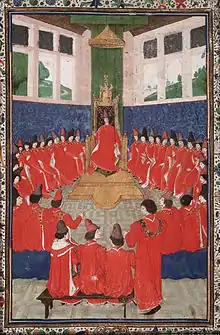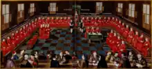 That use is, however, controversial among historians.[6] Though he used it, Huizinga noted that the "Burgundian State" was a creation of modern historiography and was not an entity that its contemporaries recognised.[7] Many historians, especially historians of law, Belgian and Dutch historians, argue that legally speaking, the lands of the dukes formed a collection of princely estates, rather than an actual state. As such, they call those lands "Valois Burgundy", "Burgundian states", "Great Principality of Burgundy",[8] "Burgundian Union"[9] or "Burgundian Commonwealth".[10]